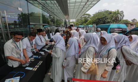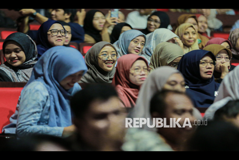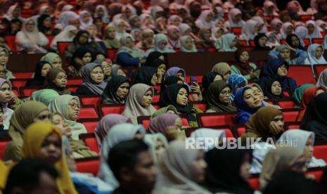 Jamaah menyimak tausiyah Habib Husein Jafar saat Tabligh Akbar Republika di ISEF 2025, JIExpo, Kemayoran, Jakarta, Sabtu (11/10/2025). Republika bekerjasama dengan Bank Indonesia menggelar Tabligh Akbar pada gelaran Indonesia Sharia Economic Festival (ISEF) 2025 bertema Muda, Taqwa, Berdaya yang diharapkan dapat mengingatkan anak muda agar mampu menjadi generasi yang bermanfaat bagi kehidupan sosial berlandaskan agama. (FOTO : Republika/Thoudy Badai)