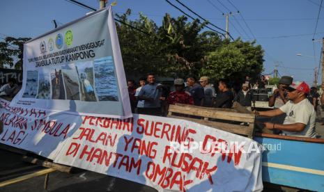 Lembaga Pemberdayaan Masyarakat (LPM), pemuda, nelayan dan warga setempat menggelar aksi tutup jalan memprotes lambannya pembangunan pemecah gelombang dan perbaikan jalan yang rusak akibat hantaman ombak pada Selasa (7/10) sehingga membuat banyak nelayan tidak bisa melaut karena kehilangan alat transportasi utama mereka.