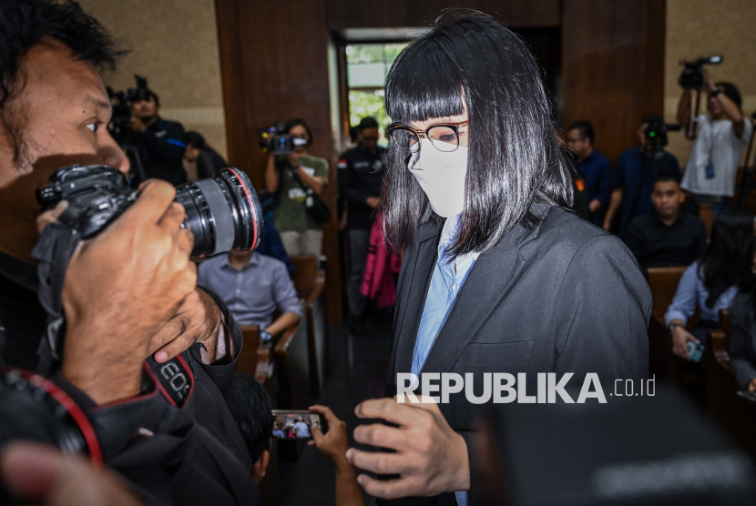 Terdakwa kasus dugaan suap terhadap putusan lepas perkara korupsi pemberian fasilitas ekspor minyak sawit mentah (CPO) Marcella Santoso (kanan) memasuki ruangan sebelum sidang pembacaan vonis di Pengadilan Tipikor, Jakarta, Selasa (3/3/2026). Marcella Santoso dijatuhi hukuman 14 tahun penjara dan denda Rp600 juta subsider 150 hari penjara. (FOTO : ANTARA FOTO/Bayu Pratama S)