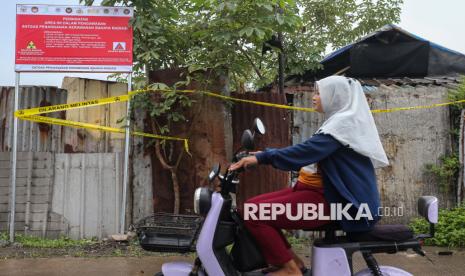 Warga menaiki sepeda listrik saat melintas di dekat plang pengawasan kerawanan bahaya radiasi yang terpasang di lokasi ditemukannya cemaran Cesium-137 (Cs-137) di Kawasan Industri Modern Cikande, Kabupaten Serang, Banten, Kamis (2/10/2025). Pemerintah menetapkan Kawasan Industri Modern Cikande dengan status kejadian khusus cemaran radiasi Cs-137 setelah dua pekan terakhir Satgas Penanganan Radiasi Cesium-137 bekerja intensif di lapangan, sementara seluruh aktivitas di dalam kawasan kini sepenuhnya di bawah kendali satgas sebagai langkah strategis untuk memastikan penanganan yang menyeluruh, terukur dan aman bagi lingkungan serta kesehatan publik. (FOTO : ANTARA FOTO/Angga Budhiyanto)