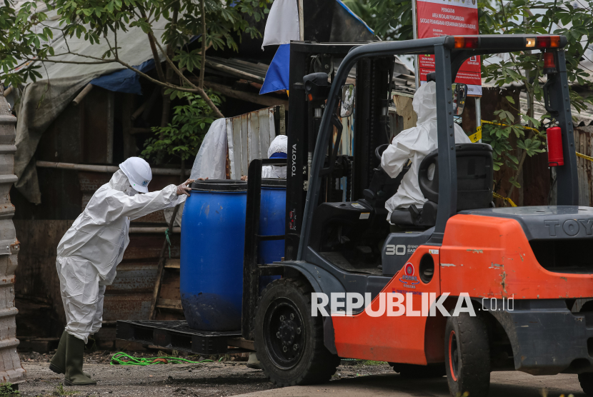 REPUBLIKA.CO.ID, BANTEN -- Tim Khusus Pelaksana melakukan dekontaminasi terhadap temuan yang tercemar radiasi Cesium-137 (Cs-137) di Kawasan Industri Modern Cikande, Kabupaten Serang, Banten, Kamis (2/10/2025).