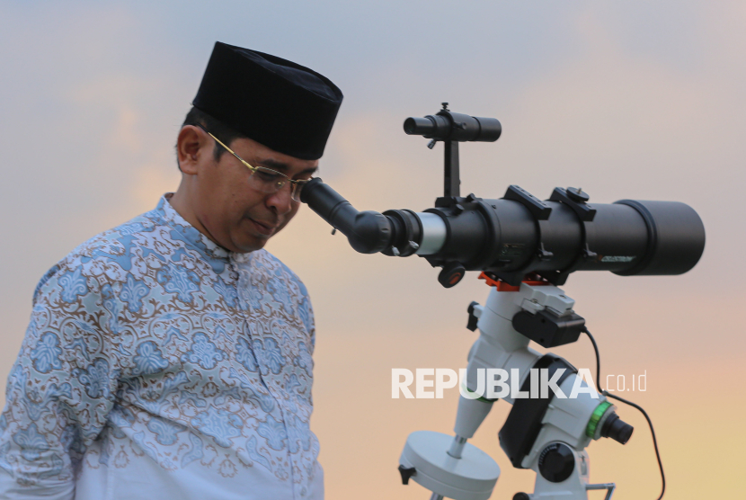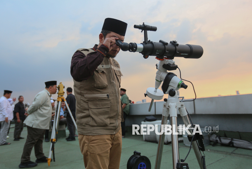REPUBLIKA.CO.ID, JAKARTA -- Petugas melakukan pemantauan hilal 1 Syawal 1447 Hijriah di Kantor Wilayah Kementerian Agama DKI Jakarta, Kamis (19/3/2026).