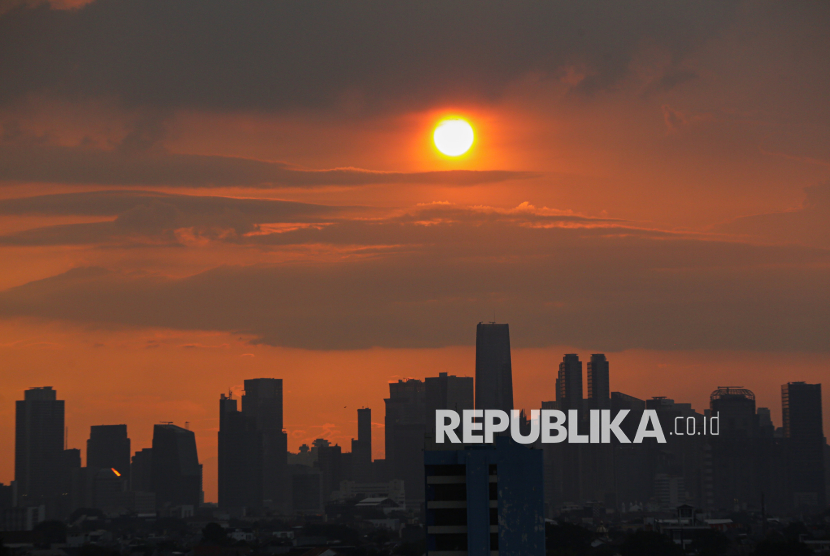 Lanskap kota Jakarta dilihat dari Kantor Wilayah Kementerian Agama DKI Jakarta, Kamis (19/3/2026). Pemerintah melalui Kementerian Agama secara resmi menetapkan 1 Syawal 1447 hijriah atau hari raya idul fitri jatuh pada Sabtu (21/3/2026). Hal tersebut berdasarkan dari pemantauan di 117 titik di Indonesia tidak terlihat hilal atau tidak terpenuhinya kriteria MABIMS yakni tinggi posisi hilal di seluruh wilayah Indonesia tidak memenuhi kriteria 3 derajat dan sudut elongasi 6,4 derajat, sehingga 1 Syawal secara hisab bertepatan dengan hari Sabtu (21/3/2026). (FOTO : Republika/Thoudy Badai)