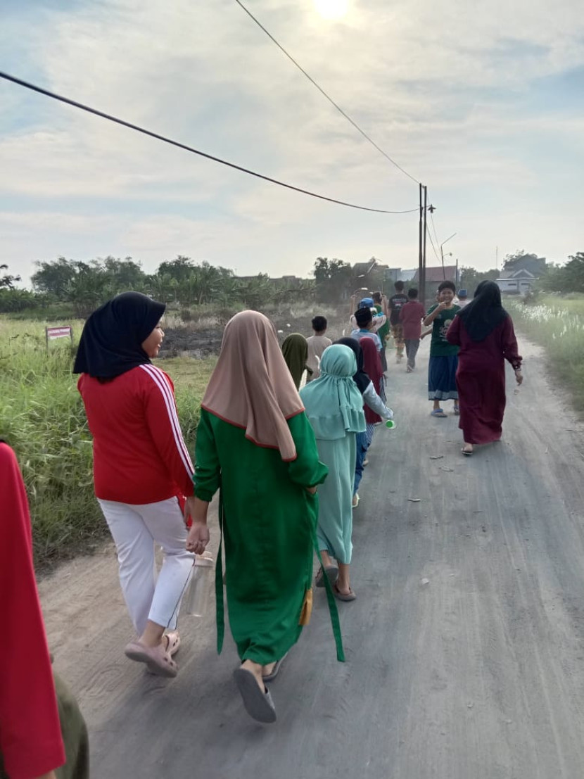 Kegiatan ini secara spesifik mengajak para santri berjalan kaki melewati persawahan desa dan tepian sungai yang asri di sekitar lingkungan TPQ. Tujuannya adalah memahami kebesaran Allah swt. (Tadabur) melalui ciptaan-Nya.