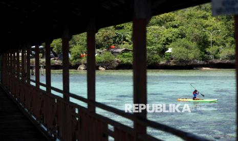 REPUBLIKA.CO.ID, MAMUJU -- Seorang pengunjung menggunakan paddle board saat berlibur di Pulau Karampuang, Mamuju, Sulawesi Barat, Sabtu (11/10/2025).