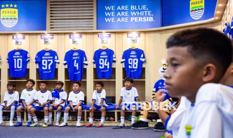 REPUBLIKA.CO.ID, BANDUNG -- Anak-anak duduk di ruang ganti tim Persib Bandung saat kegiatan Persibday Festival 2025 di Stadion Gelora Bandung Lautan Api (GBLA), Bandung, Jawa Barat, Ahad (12/10/2025).