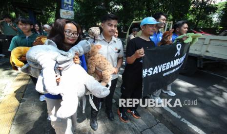 REPUBLIKA.CO.ID, BANDUNG -- Puluhan pegawai Bandung Zoo atau Kebun Binatang Bandung, menggalang donasi di Jalan Tamansari, Kota Bandung, Jumat (12/12/2025).